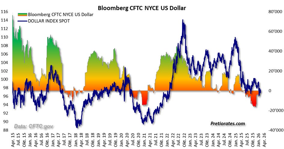 In contrast, the same breed of fund managers is more optimistic about the Euro than ever before. This would almost seem charming—were it not for the political and economic climate in Europe. Self-doubt dominates the political stage, while industry talks of deindustrialization, accompanied by persistently high energy prices. The current positioning therefore seems less like sober analysis and more like a prime example of a classic contraindication: whenever investors have bet so heavily on the Euro over the last ten years, the European currency has slumped...