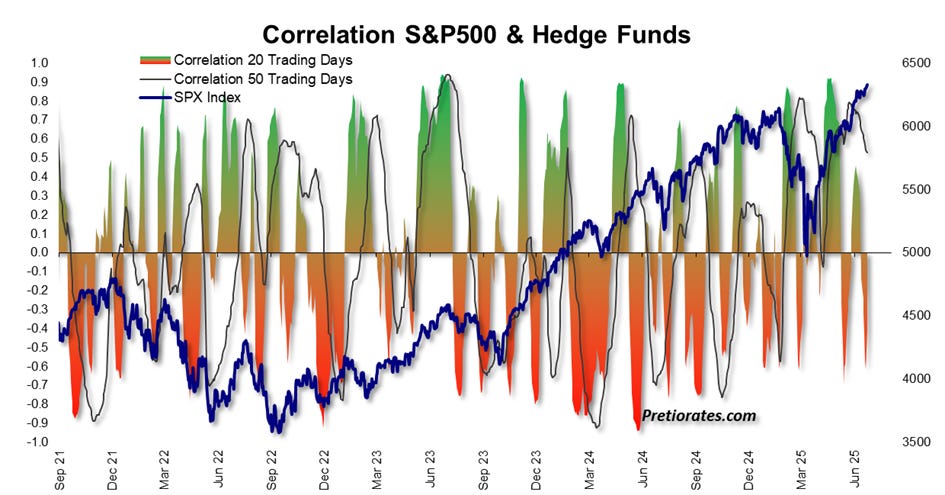 Particularly interesting: hedge funds with index exposure have recently reduced their long positions and switched to short positions. In other words, they are betting on a correction.