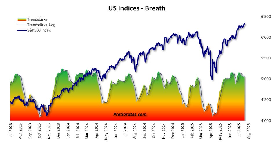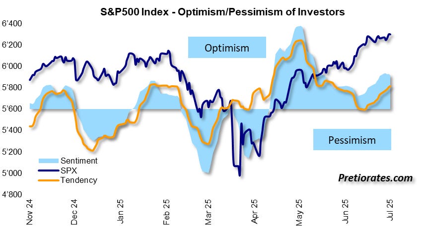Sentiment remains positive – a good sign. However, this indicator is volatile and can change quickly. As long as pessimism does not set in, a sharp correction is unlikely without a surprising negative event – but caution is advised: the wind can change quickly...