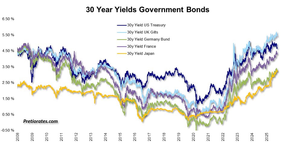 No wonder, then, that the financial markets recently reacted euphorically to falling interest rates. In the short term, this has a stimulating effect. But rising yields on 30-year US government bonds cloud the picture: they are a warning sign that government debt is likely to be at the top of the agenda soon – not only in the US, but also in Europe and Japan.