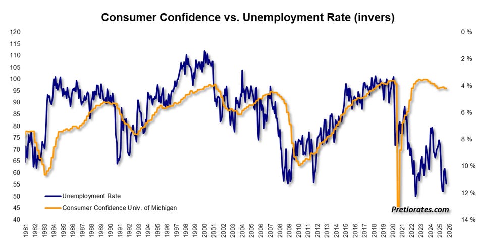 The FOMC cited the recent weakness in the US labor market as its main argument. Disappointing job growth in particular weighed on sentiment. The inverse unemployment rate had long correlated closely with consumer confidence—until the pandemic turned everything upside down. Since then, consumer sentiment has been at rock bottom, and it is clear that consumers are no longer the driving force behind the US economy. Instead, the government's expansionary monetary policy has been keeping the economic engine running for five years.