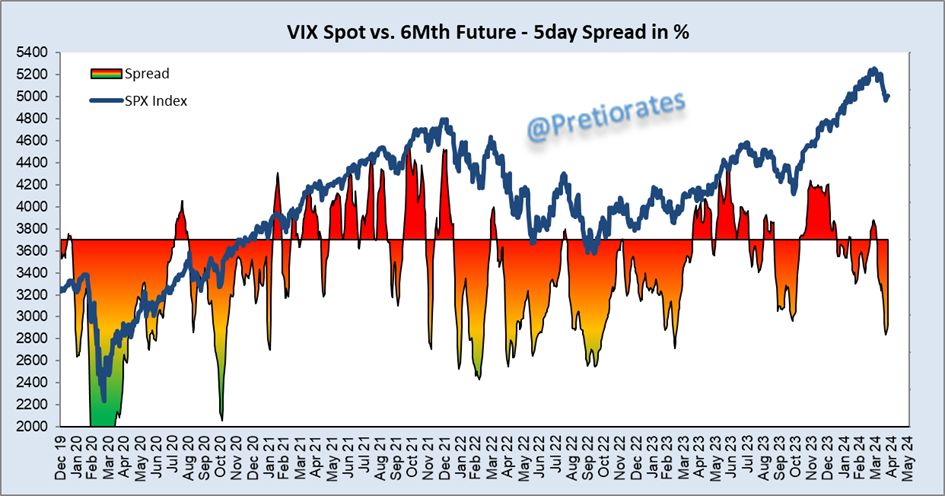The spread between the Volatility Index Spot and the 6 month future of the VIX Future suggests a technical recovery of the US equity markets...