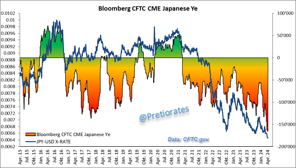 This raises concerns: Short positions in the Japanese Yen continue to grow and grow. If the Bank of Japan (BoJ) has a problem, all central banks will have a problem too...