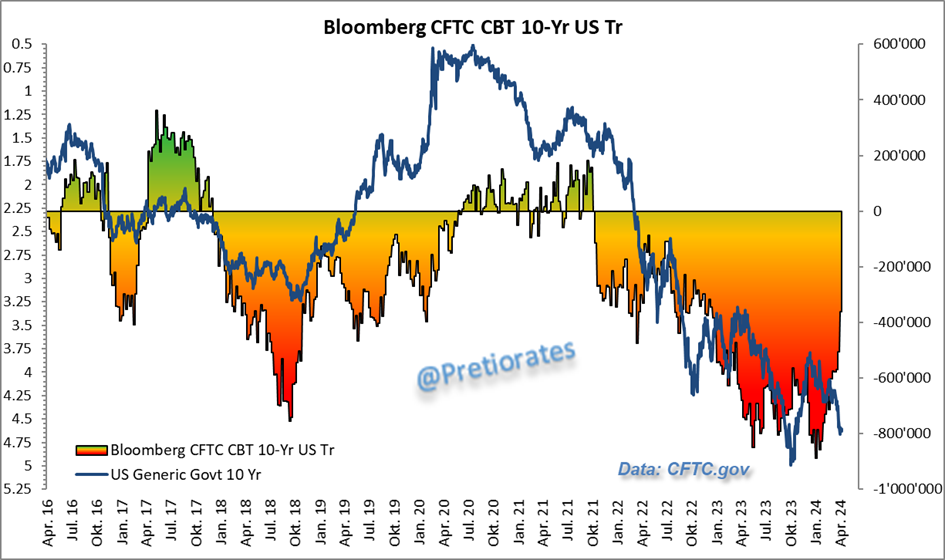 Also very interesting: The short positions in the US Treasury over 10 years are being covered at a rapid pace. Why the rush?