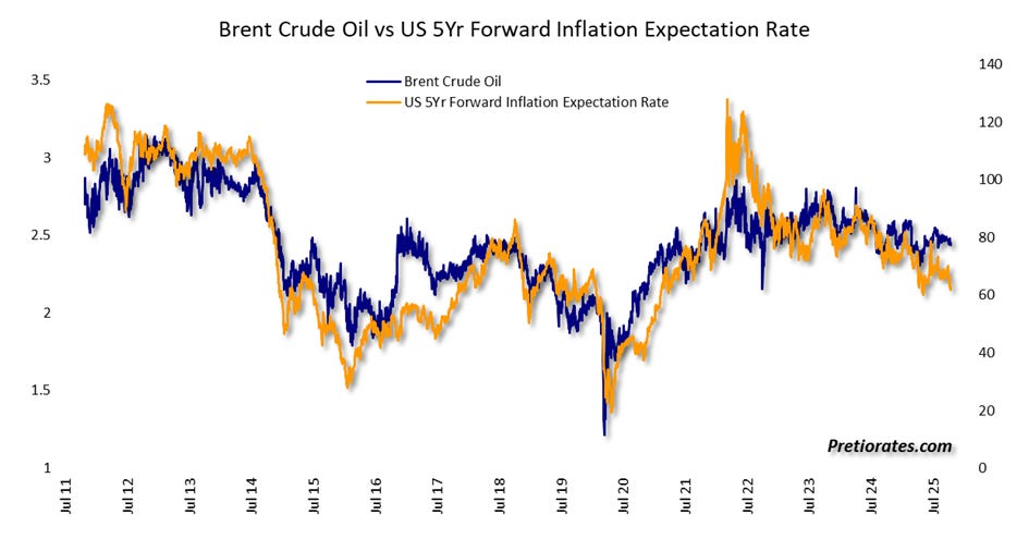The close link between oil prices and the CPI remains striking. However, there is currently no sign of mispricing that would offer an attractive entry opportunity.