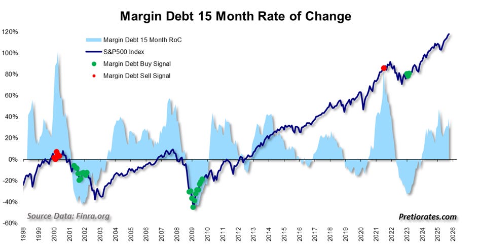 Margin debts – i.e., stock purchases on credit – have risen sharply and exceeded USD 1 trillion for the first time in the US. This is raising warnings of excesses. The figure is impressive, but the absolute number does not mean anything. The volume of credit naturally grows with market capitalization and GDP. It becomes interesting when the “rate of change,” the current percentage change over 15 months, fluctuates sharply. This is not currently the case – which is why our chart does not show any real cause for alarm.