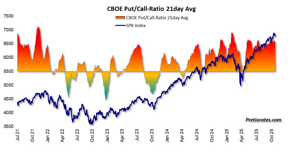 The bears point to the high call/put ratio: too much optimism, too many calls – usually a precursor to corrections. True, but a high ratio can persist for a surprisingly long time and is therefore not a reliable timing tool in every situation.