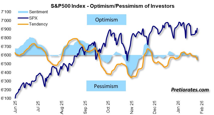 A market can remain at a high level for a long time as long as positive sentiment carries it. Negative news is relativized, classified, or simply ignored. But it is precisely this sentiment that is beginning to shift. Since the end of the year, it has been neutral at best – now it seems to be noticeably clouding over. And that is the moment when investors suddenly become willing to part with positions they had just defended.